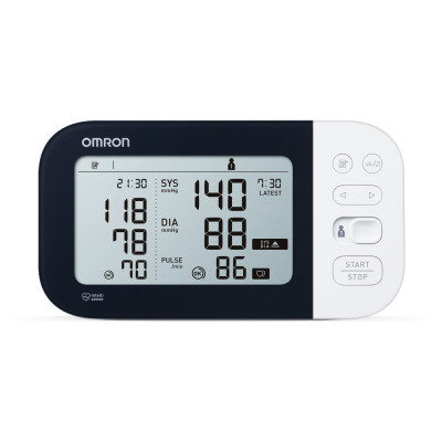 Omron M7 Intelli IT kan tage tre på hinanden følgende blodtryksmålinger med 30 sekunders mellemrum og viser derefter gennemsnittet for at give dig en realistisk indikation af dit morgen- og aftenblodtryk over tid